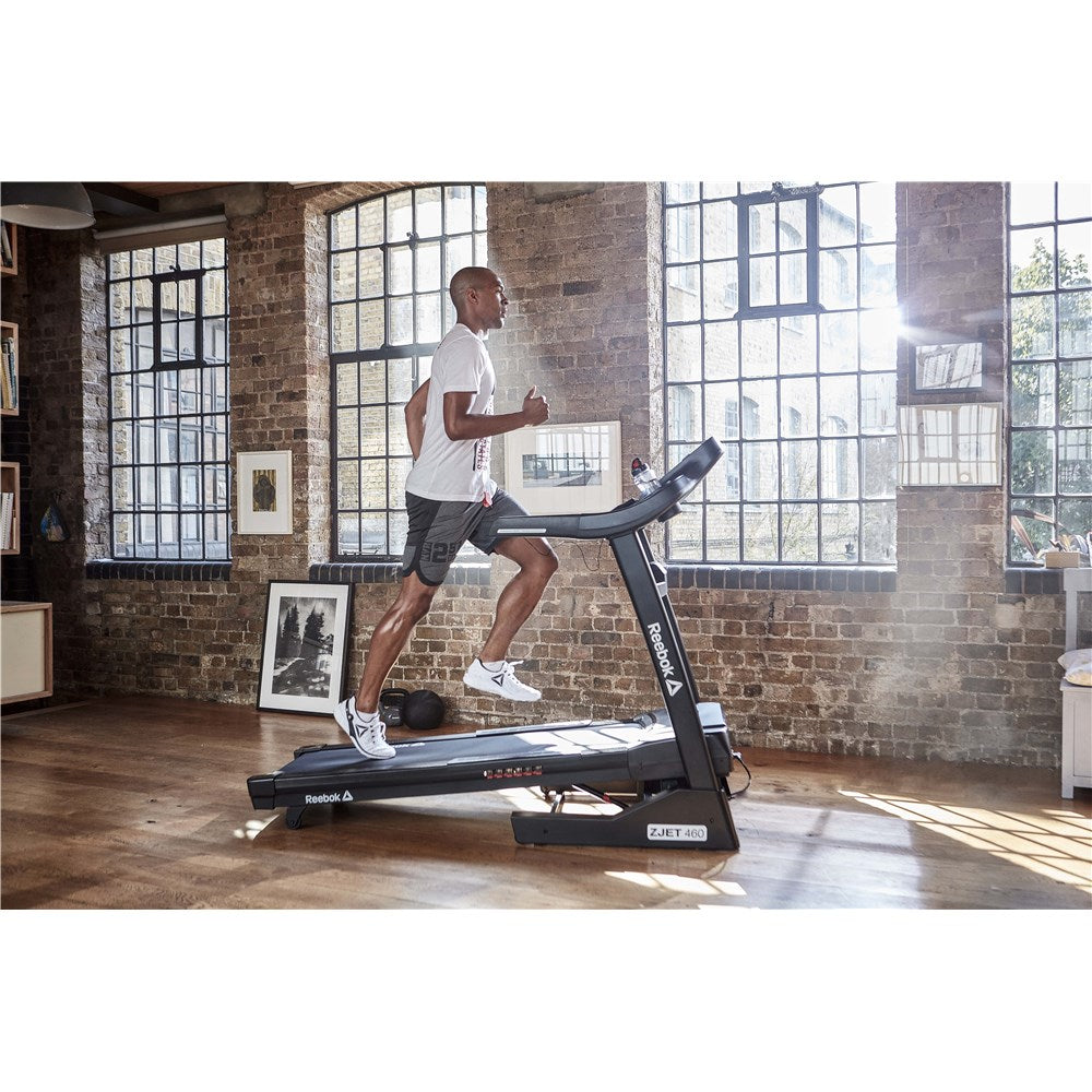 Reebok Z-Jet 460 løbebånd lanceres med "air motion technology " som betegnes som den bedste stødabsorbering. Air teknologien reducere slag og stød på diversel led,og nedsætter derfor risikoen for løbeskader. Den store løbeflade på 140 x 46 cm. gør løbet mere frit, hvilket er vigtigt for at opnå et godt "løbe flow" En kraftig motor med en maksimal ydelse på 2,5 Hk., en topfart på 20 km og 15 stignings intervaller, gør løbebåndet aldeles interessant til bakke løb og intens interval træning. Dette løbebånd anbefales til alle typer af træning, langdistance og udholdenhed eller høj intensitets løb. Med 24 programmer kan du vælge frit for, hvilken type træning, du vil dyrke. Reebok Zjet 460 kommer inklusive Reebok Fitness Training App. Du kan registrere og lagrer dine træningsture, og naturligvis følge dem virtuelt på Google Maps og Street view.